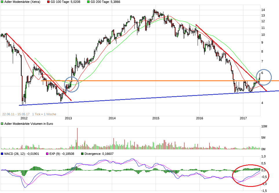 Wie gesagt, kein Highflyer, aber fairen Wert würd ich bei 7 € taxieren. Wenn sich die verbesserte Entwicklung dann auch 2018 fortsetzt, sind auch deutlich höhere Kurse möglich, aber das wird der Markt wohl erstmal abwarten wollen. Dafür ist das Geschäft in der Branche dann doch zu unsicher, um in diesem Jahr schon wieder Kurse von 8-9 € zu sehen, wobei die Charttechnik durchaus dafür spricht, und selbst Tom Tailor hat ja ne starke Rallye hingelegt, obwohl weit unsicherer. Ich geh aber erstmal nur von 7 € aus. ----------- the harder we fight the higher the wall |