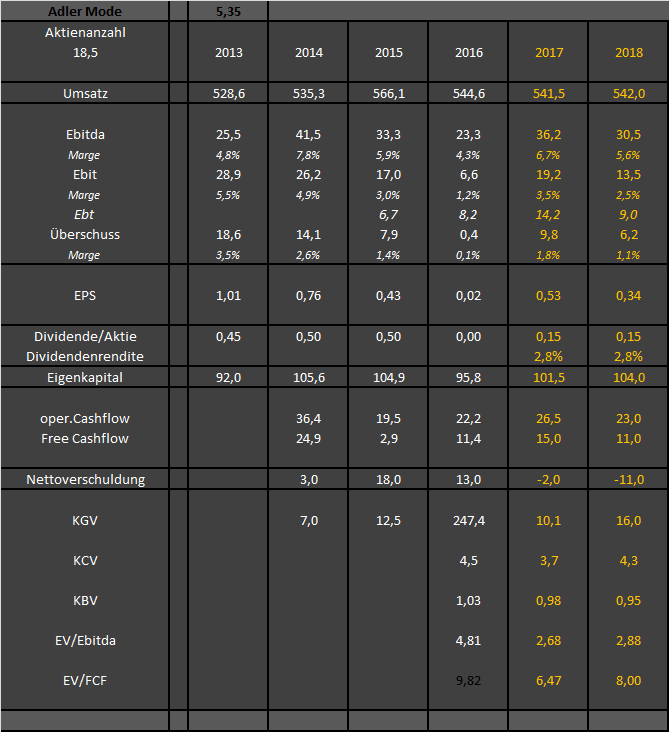 angeschaut in meinem Buch 'Unternehmensbewertung & Kennzahlenanalyse' ... is schon ein komplexes Ding , sie wird da die 'vollständigste Enterprise Value-Kennzahl' genannt. Sorry dass mein Falschverstehen und Nichtwissen da ... gestehe, dass derartige Kennzahlen in ihrer Zusammensetzung und auch Bedeutung ich mir leider nur schwer merken kann und sie auch leicht wieder vergesse, und sie sinnvoll anwendenkann ich sie noch weniger ... und ich daher idR halt über einfachere Dinge wie EK/KGV/EPS/Aktionärsstruktur/xxx in eine Einschätzung des Unternehmens einsteige, und das auf der Basis meiner berufl. Erfahrungen, was mich dann eben auch viele AGs von vornherein ausschliessen lässt, zB Sektoren von denen ich keine Ahnung und auch kein Gefühl für habe (zB Telkoms, Biotech, Medizin, Chemie, alte Industrie, ...), oder auch zu sehr internationale AGs. Ich kenne DE, hier die Kultur, die Politik, die allgemeinen Abläufe. So schalte ich vieles Problematisches aus, und es gelingt mir ohne die komplexen Kennzahlen mit meinen einfachen Mitteln meine mich doch zufriedenstellende Performance zu erzielen. Adler liegt mir näher, da ich selbst in einer Bekleidungshersteller-Firma beschäftigt war, dort u.a. zuständig für die (Software der) Läden. Wenn Adler (oder XXX) einen Überschuss nahe Null hätte, läge es vielleicht auf meiner Watchlist weil ich früher da schon mal drin war und ich das Adler-Metier einigermassen kenne (ich kenne nicht die von Dir genannte Peergroup, da mir zu sehr international!!), aber nicht in meinem Depot. Wenn ich doch mal in so nem Unternehmen drin sein sollte dann wohl weil ich da reiner Follower bin und einem Kenner vertraue. |