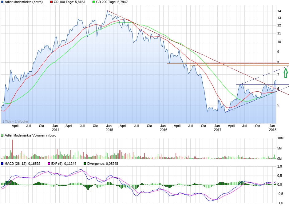 Was ich auch glaube ist, dass 2017 gut lief. Vielleicht hat man den Analysten gesagt, dass die Einzelhandelsumsätze in der Textilbranche um 5-6% gestiegen sind, wie kürzlich ja von der Branche bekannt gegeben wurde, und das Adler davon in Q4 sehr zufriedenstellende profitieren konnte. Da Q4 ja für die Branche und Adler sehr wichtig ist, hängt halt viel davon ab. Ansonsten ist das Forderungsmanagement noch wichtig. Wenn Adler beim Cashflow in Q4 entsprechend performen konnte, ergibt sich eine sehr gute Bilanzsituation mit faktisch kaum Nettoverschuldung. In 2018 könnte sie theoretisch in ein leichtes Nettocash-Polster drehen. Das ist in der Branche auch nicht selbstverständlich, und es lässt vor allem Investitionen zu, beispielsweise in neue Märkte. Vielleicht gab es auch hinsichtlich Steilmann was Neues. ----------- the harder we fight the higher the wall |