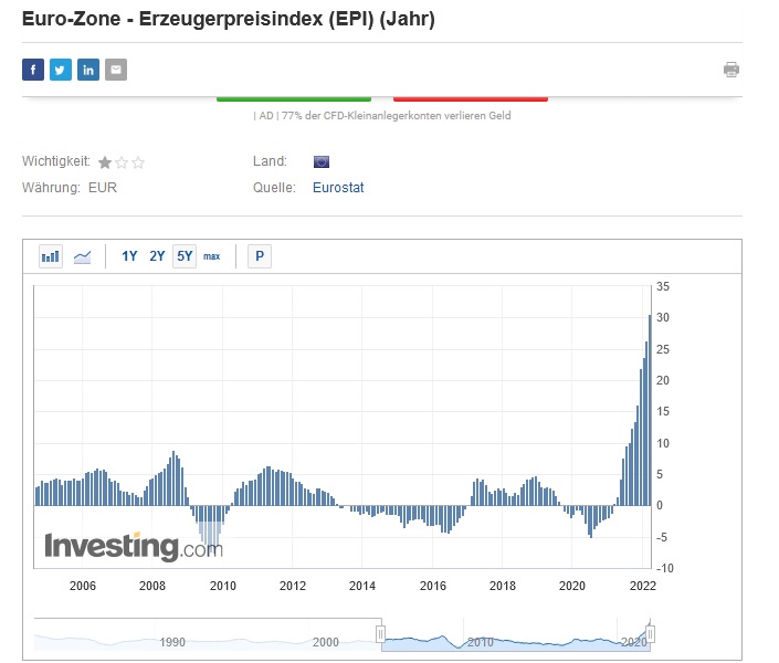 Der EON Chef sprach ja von 20fachen Beschaffungspreisen beim Gas - will man der Omi dann 20000 statt 1000 Euro Gasrechnung stellen ? - von den Preissteigerungen bei allen Vorprodukten/hiesigen Lebensmittel/Konsumgüter ganz zu schweigen.