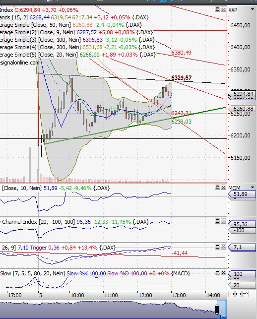 Nach dem gestrigen Reversal muss sich heute zeigen, ob es Bestand hat. Der weitere Weg nach oben ist nun übersäät mit Widerständen, die vor ein paar Tagen noch Unterstützungen waren.