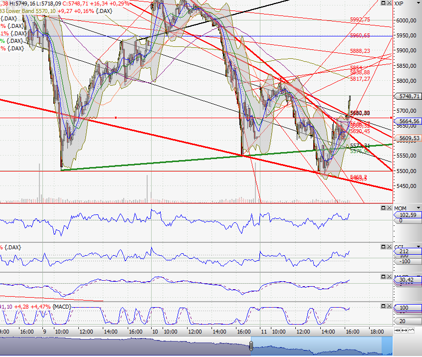 Wie geplant stieg der DAX erst auf Höhe des gestrigen Tagestiefs und kam damit zumindest in die Nähe des massgeblichen Downtrends.