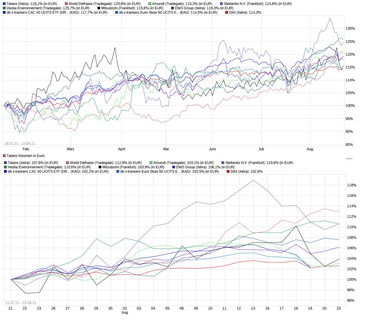 wenn man nicht mehr weiter weiß gründe einen Vergleich mit DAX als Referenz. Verblüfft bin ich bei Ahold. Das habe ich so nicht erwartet und schon gar nicht so geplant. Wenn die Werte ähnlich oder besser sind wie der DAX hat man nichts falsch gemacht.