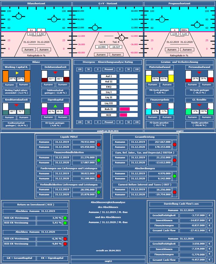 Um die Entwicklung aufzuzeigen, wurde der Jahresabschluss 2019 mit dem Jahresabschluss 2020 verglichen ( vor Corona und 10 Monate in Corona ). Häufiger wird angemerkt, warum Auswertungen mit alten Daten präsentiert werden. Bei den von mir erstellten Kurzanalysen handelt es sich um ein längerfristiges Projekt bei dem zunächst vorpandemische, danach dann inpandemische und zum Schluß nachpandemische Zeiträume dargestellt werden, um den Einfluß von Corona auf Unternehmen/Branchen zu dokumentieren.