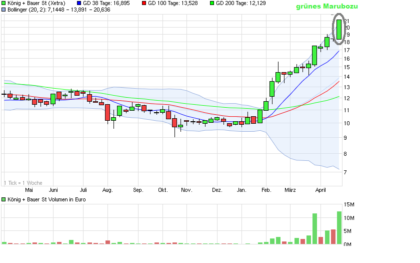 sieht sehr gut aus - ein bullisches grünes Marubozu mit hohem Umsatz. Sollten dies Mittel/Langfristanleger sein droht hiervon keine Gefahr. Die 200t-Linie ist auch hinreichend weit entfernt.