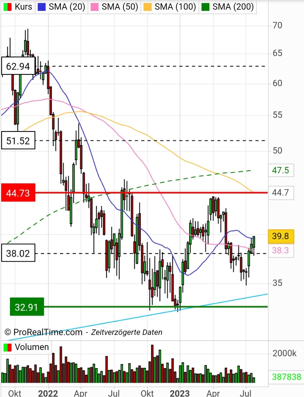 Wenn jetzt der Gesamtmarkt noch in den nächsten Tagen anzieht, könnten wir die 44 knacken.