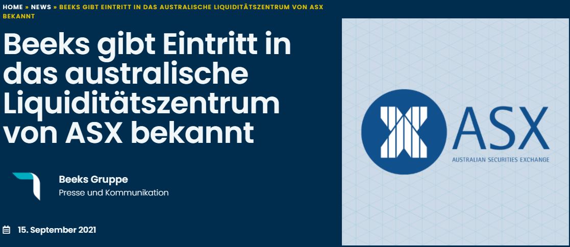 Beeks hat seine Präsenz im asiatisch-pazifischen Raum um zugang zur Australian Securities Exchange (ASX) erweitert, die Colocation-Dienstleistungen in das Australian Liquidity Centre (ALC) anbietet, um direkten Marktzugang und Cloud-Services mit geringer Latenz zu ermöglichen.