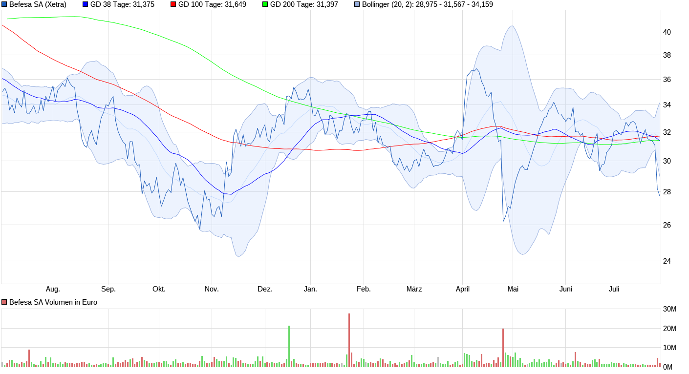 Damit setzte sich der seit Wochen tendenziell gute Lauf von Befesa an der Börse fort. Seit dem Jahreswechsel hat die Aktie knapp 13 Prozent gewonnen, hatte allerdings zuvor auch deutlich an Wert eingebüßt: Auf Dreijahressicht beläuft sich der Kursverlust noch auf mehr als 60 Prozent.