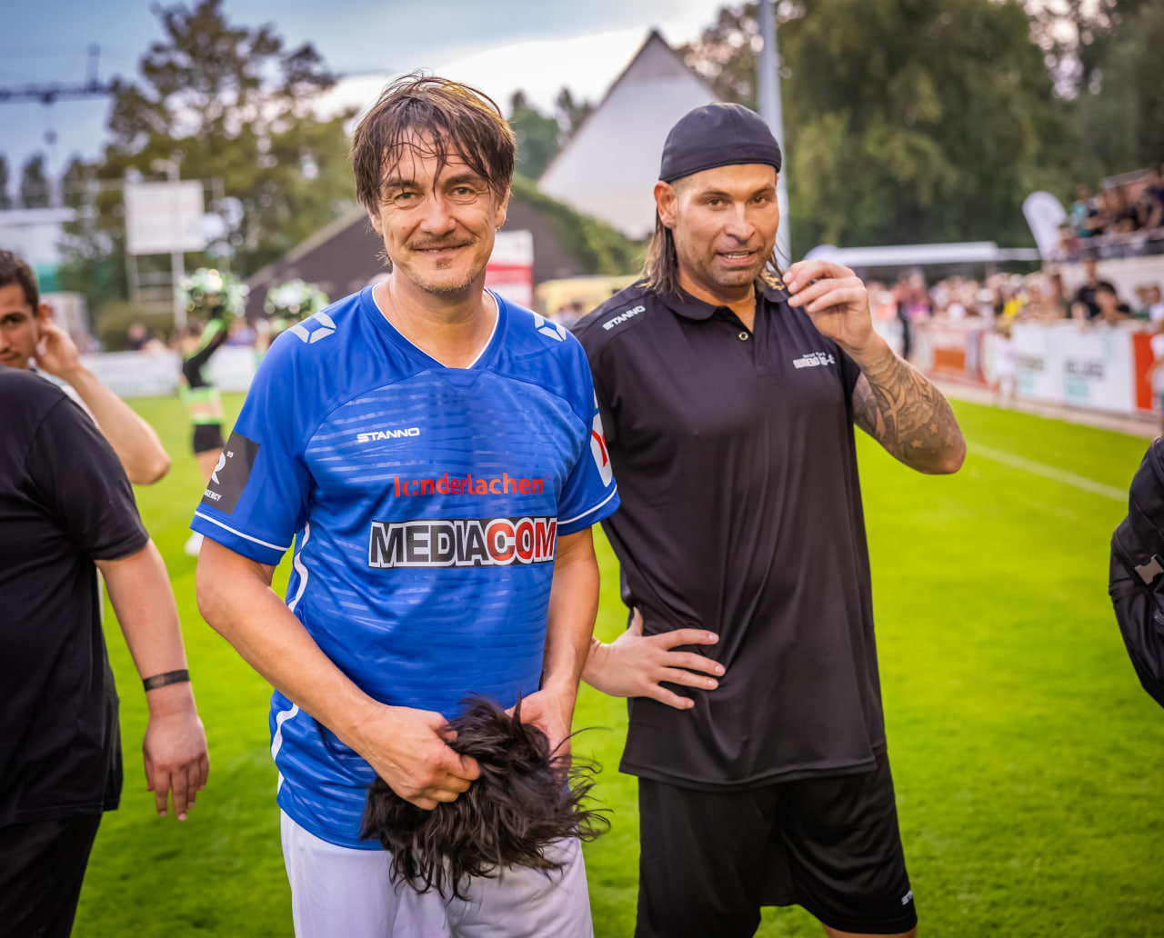 Entertainer Matze Knop (51, l.) mit Ex-Nationaltorwart Tim Wiese (44) beim „Numero Uno Cup“ (Deutschland vs. Italien) 2024.