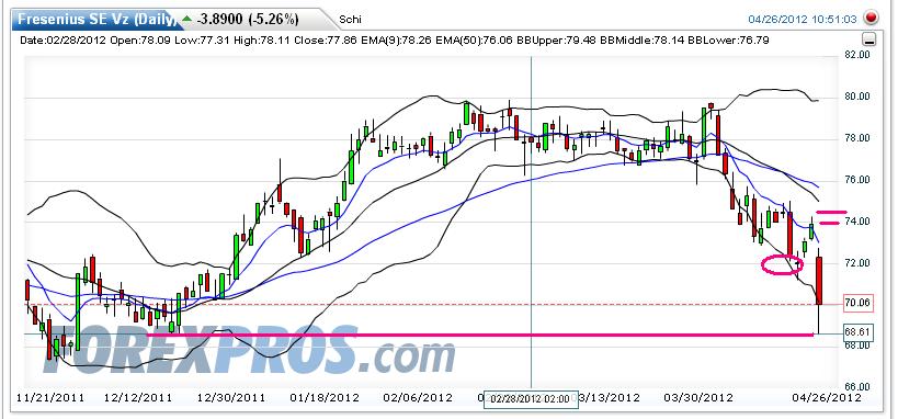 Montag (23.) Fresenius short gegangen mit SL 73.