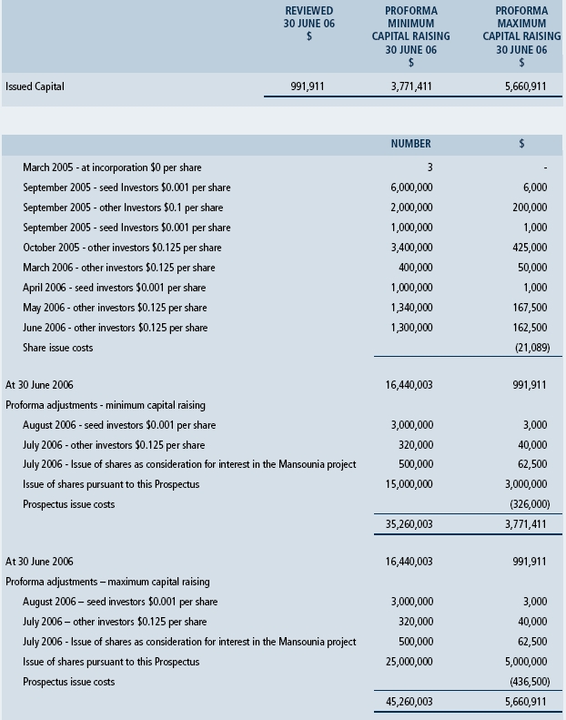• subscribe for 100 million fully paid ordinary shares at an issue price of three cents per share to raise $3 million.