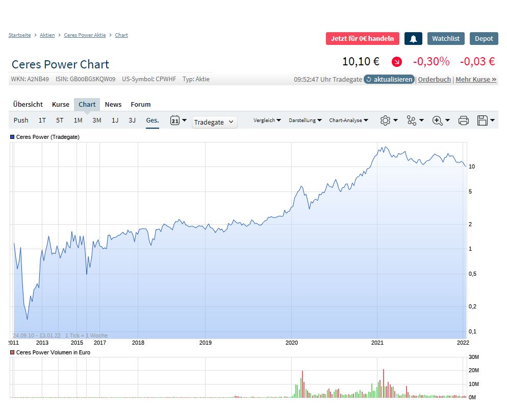 Donnerstag, 13. Januar 2022 Ceres Power Holdings Trading und JV Update
