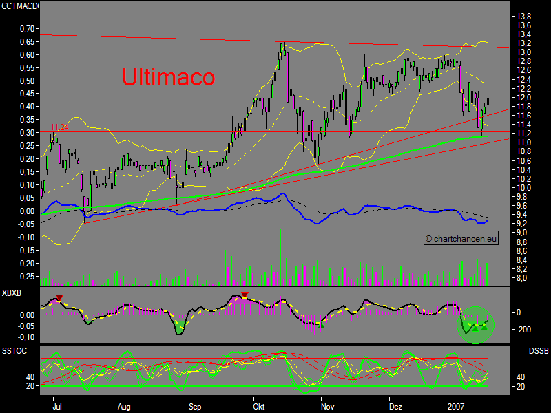 Der Kurs bewegt sich noch klar unter der vlx Linie bei 12,5, welche ebnfalls als Widerstand fungiert.