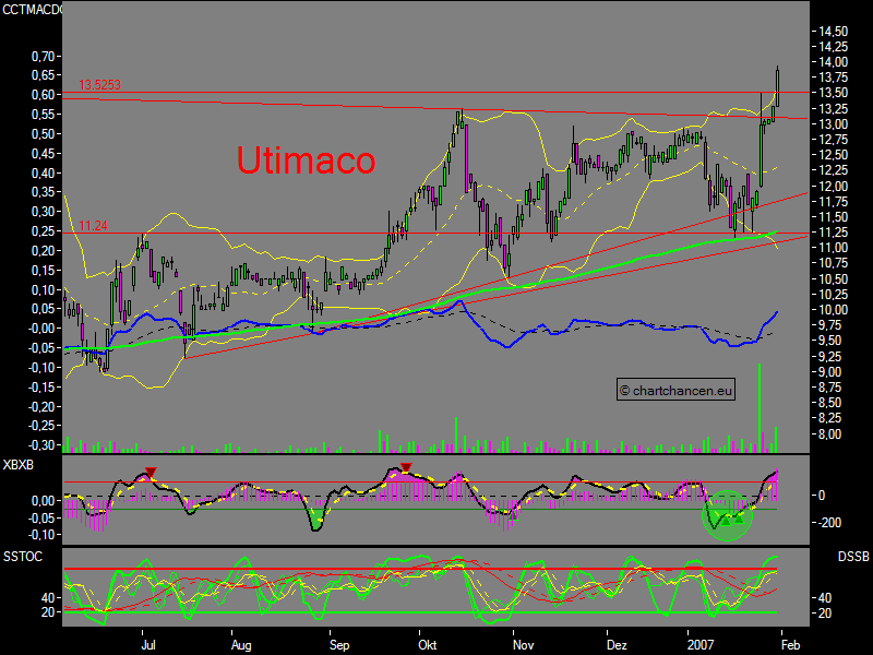 ich bin seit November 2004 in Utimaco investiert und werde es noch lange bleiben (hoff ich doch). Seit dem bin ich ein richtiger Fan des Unternehmens geworden und verfolge mit Wohlwollen die Entwicklung der Geschäfte und des Aktienkurses. Wenn das Auslangsgeschäft weiter so kräftig wächst, werden wir wahrscheinlich noch sehr viel Freude mit unserem Wert haben. Denn es zeigt sich schon seit langem das man in der Aktie investiert bleiben sollte.