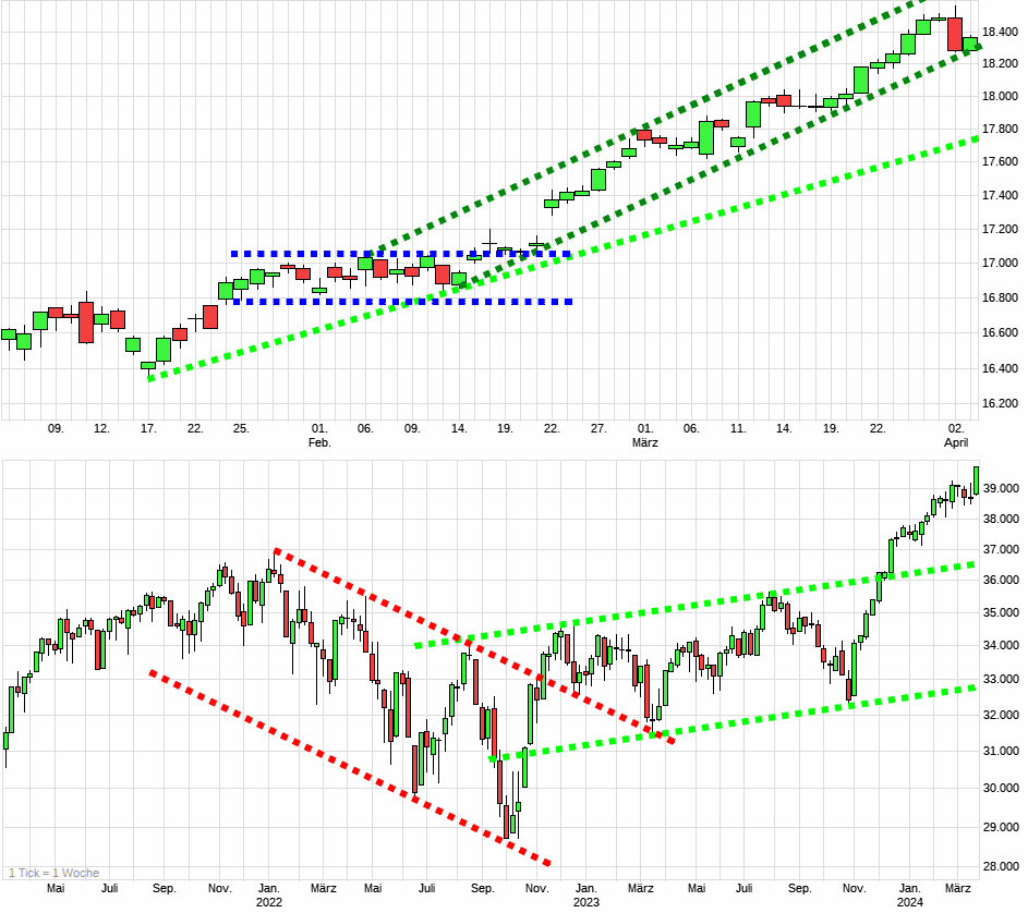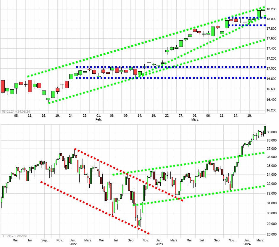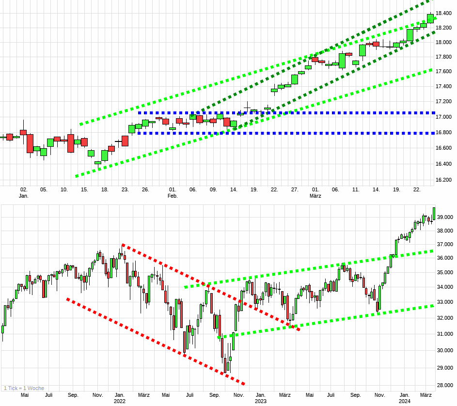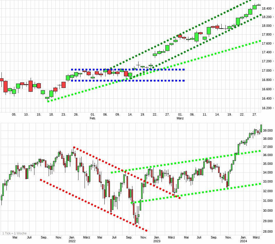btw der chart - wer lesen kann weiss was da passiert ist - wurde meine ich auch diskutiert und dokumentiert - VORHER - nicht im Nachgang UND kostenlos - aber das können andere überprüfen aber eben in threads die sich tatsächlich mit ct befassen nicht mit esoterik - der kreis ist der drawdown - shame on me es waren sogar ~900 punkte aber auch 3700 da bin ich tatsächlich zu kleinlaut ghewesen - und nennt sich bestätigende flagge - weiss man natürlich vorher nicht - tatsächlich reines glück er hätte größer ausfallen dürfen OHNE die eigentliche vorher diskutierte Annahme zu widerlegen - aber das wird für dich nix sein :-)