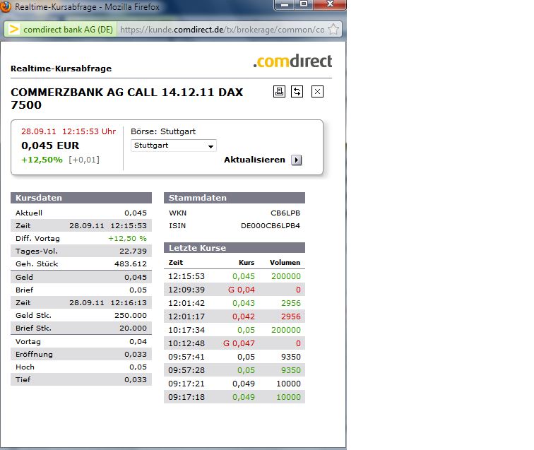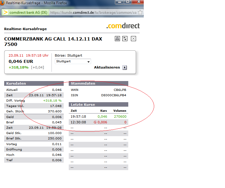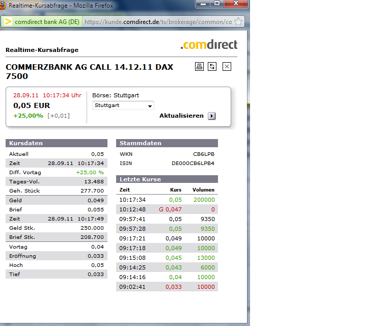 von Jochen Steffens Offensichtlich sehen auch viele andere, besonders institutionelle Anleger die 5.000er Marke als starke Unterstützung im DAX an, weil sie finden, dass bei diesem Niveau der DAX unterbewertet ist. Anders sind die starken Käufe, sobald der DAX an diese Marke fällt, kaum zu erklären. Heute aber befeuerte die Hoffnung auf eine Ausweitung des Rettungsschirms EFSF und die Erwartung, dass die Kapitaldecke der Banken mit Hilfe des EFSF gestützt werden soll, die Kurse an. Gleich zweistellig konnten somit sowohl die Commerzbank als auch die Deutsche Bank zulegen. Ein erkennbarer Boden Mit dem heutigen Kursanstieg hat sich in Form einer W-Formation ein Boden ausgebildet, dem eine gewisse Symmetrie zugrunde liegt. Hier der bekannte DAX-5Min-Chart dazu:
