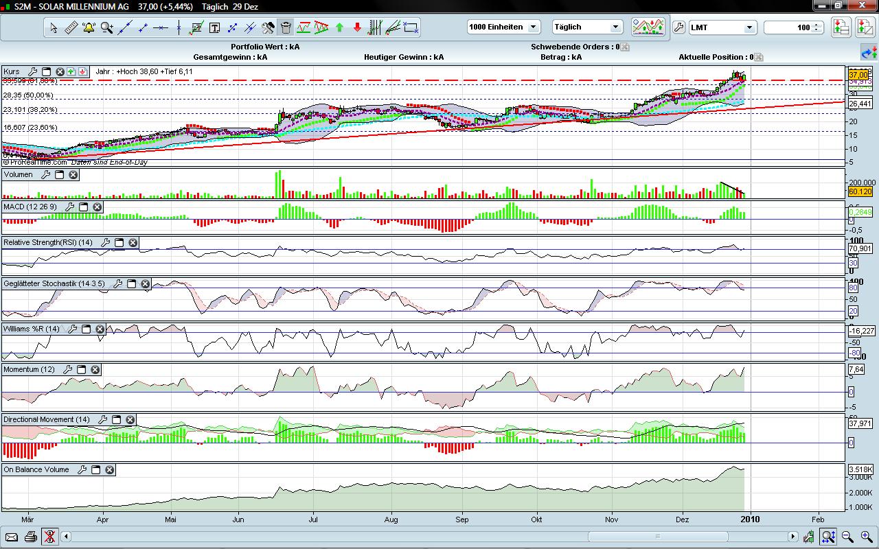 Die Vola ist aber seit Weihnachten schon hoch. Gestern hatten wir eine Kursspanne von 37,21 € (ganz am Morgen) bis 35,39 €. Langsam überlege ich mir sogar bei dieser hohen Vola und dem sehr vernüftigen Handelsvolumina mit der Solar Millenium-Aktie zu traden.