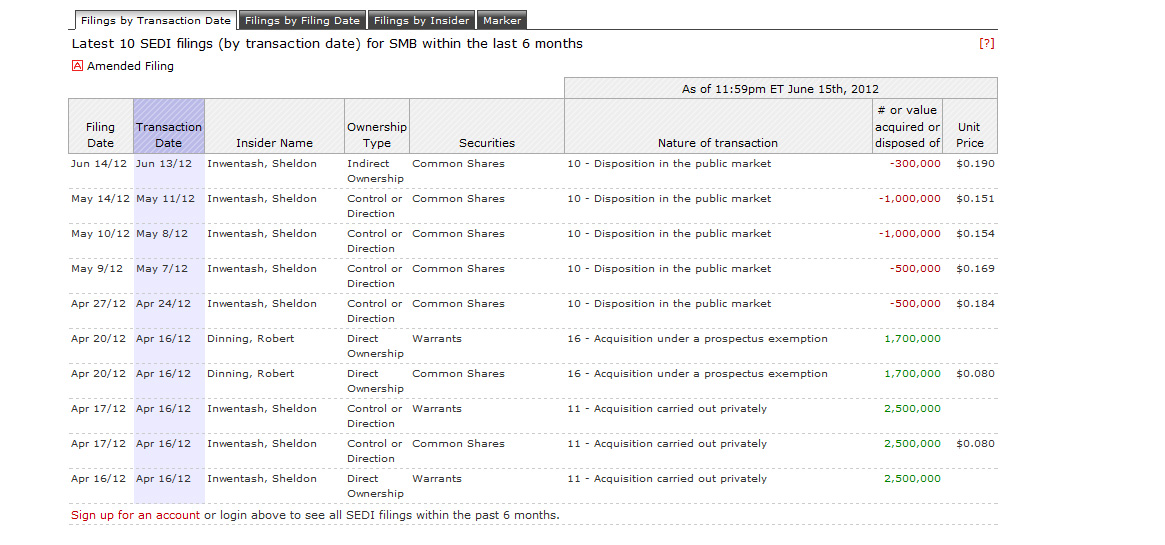 Simba führt vor kurzer Zeit eine Verwässerung zu 0,08 CAD durch. Danach fängt die Werbung an, pushen, pushen ..... der Kurs steigt auf über 0,20 CAD nur wegen des Hypes. Was glaubst du wer jetzt bestimmt einige Shares verkauft ? Natürlich die Insider wie Sheldon, der hat ja jetzt bereits weit über 100% gemacht. Kann muss aber nicht! Warum führt das MM kurz vor Beginn der Werbung eine solch schlechte Verwässerung durch, sowas kann ich nicht verstehen. Es sei denn, mann ist den Insidern noch was schuldig.