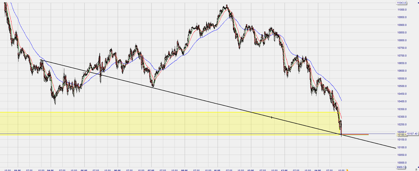 Die gelbe Zone 10200-350 sollten nicht mehr so eine große Wirkung haben auf den Dax, möglichweise geht es ohne großes TamTam direkt durch.