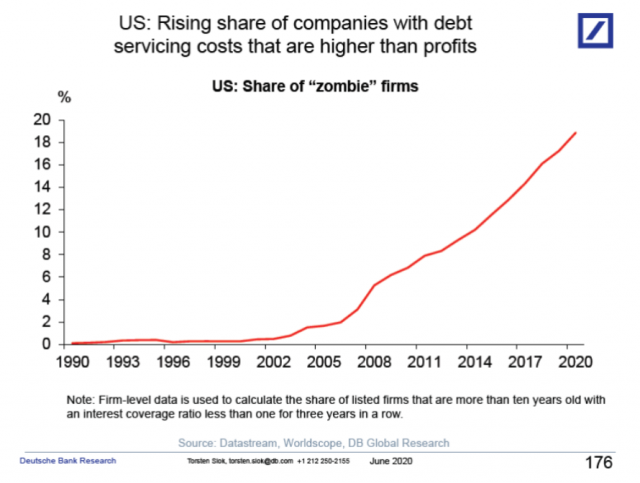 Einzelne Unternehmen sind gewachsen und stehen stark da, das stimmt! Sind wohl auch nicht überbewertet, wobei, das wird sich erst noch zeigen. Aber sie korrelieren auch mit den Märkten. Und so wird sich auch eine VW nicht entziehen können wenn der Dax unter Druck gerät. Ich sehe vor allem Verdrängungswachstum, also einzelne große Unternehmen wachsen, aber auf Kosten von anderen kleinen Unternehmen. Insgesamt ist die Wirtschaft also das BIP ja nur Minimal gewachsen und das trotz steigender Geldmenge. Wichtig für die Wirtschaft ist ja auch der Geldumlauf... und der ist kontinuierlich gesunken. Da fragt man sich ob die Notenpolitik wirklich funktioniert? Jetzt kommen aber unangenehme Zeiten auf uns zu, erhöhte Arbeitslosigkeit und die Menschen werden weniger Ausgeben. Rezession, ganz klar, dann aber nicht nur in Deutschland sondern weltweit. Für mich steht fest, die Kurse sind nur gestiegen wegen der Notenbank Liquidität. Und das ist nicht nachhaltig, sondern nur ein temporärer Effekt. Mal abgesehen von den Entwicklung an den Märkten sehe Ich ein Risiko für eine verarmende Gesellschaft, die Reichen werden Reicher, die Armen ärmer. Dazu das Risiko dieser Zombiefirmen. Das ist eine Sackgasse: wir können die Zinsen nicht erhöhen sonst werden diese Unternehmen pleite gehen, wenn die Zinsen aber niedrig bleiben, dann steigt der Anteil an Zombiefirmen weiter an. Es läuft auf ein böses Ende hinaus. Ähnlich sehe ich die Entwicklung in Europa. Es gibt viele Sackgassen, und man macht einfach so weiter... Ich finde es sehr schade, ich lebe ja in der Nähe von Brüssel und würde mich sehr freuen wenn wir in Europa zusammen halten und einander helfen. Europa ist wirklich toll, wenn man mal ein bisschen in der Welt unterwegs war. Aber dafür bräuchte es doch mal eine gemeinsame Fiskalpolitik. Die europäischen Länder entwickeln sich auseinander, das ist was ich sehe. Target2 Salden drückt das ganz gut aus. Die Ungleichgewichte steigen an, das ist alles andere als gesund.