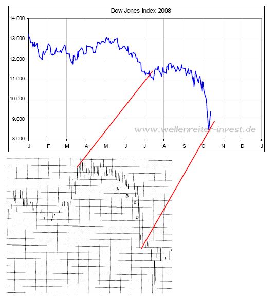 "Im Vergleich zu 1987 war der Fall von August bis Oktober gerundeter. In einem alten Buch von Richard W. Schabacker („Technical Analysis“) wird ein solches Verhalten als „Drooping Bottom“ beschrieben.