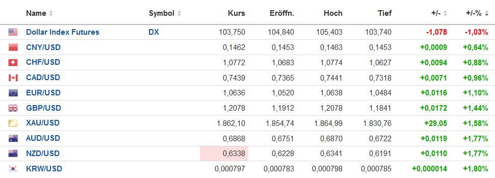 Er hatte aber den wenig eingängigen Titel: "Der Euro ist gegenüber USD und CHF zu teuer" - was teils zu Missverständnissen führte. Mit diesem Thread möchte ich daher - mit klarerem Titel - an den alten anknüpfen. In diesem alten Thread hatte ich um die Jahreswende 2004/2005 Dollarkäufe empfohlen und bin selber zu 1,3450 (in Cash) eingestiegen. Der Verkauf (ebenfalls gepostet) erfolgte im Sommer 2005 bei Kursen um 1,22.