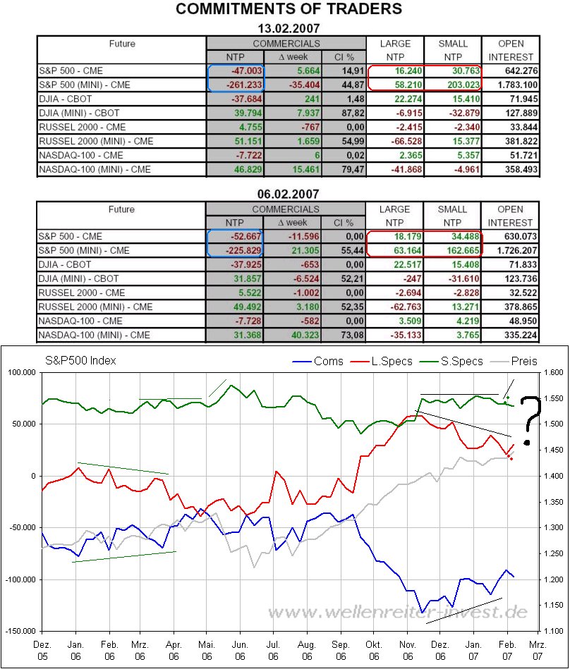 LargeTrader haben ihre Longübergewichtung reduziert aber dafür die Smalls etwas deutlicher