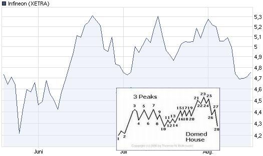 Mir wäre es am Liebsten wenn IFX noch bis zu 5 € hochlaufen würde und der DAX bis 6.300. Dann würde ich mich langsam mit Shorts beim Gesamtmarkt und auch bei IFX positionieren. IFX könnte dann erst mal bis zur 200-Tageslinie bei 4,42 € korrigieren. Das wäre mal mein erster Haltepunkt für IFX. Geht es mit dem Gesamtmarkt runter bis auf 5.500 Punkte, dann wird nach meiner Meinung IFX die 4 €-Marke testen.