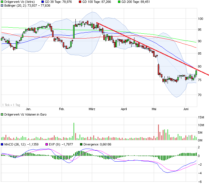 MÜNCHEN - Seit der Gründung im Jahr 1889 hat Drägerwerk (WKN 555 063) verschiedene Epochen mit Erfolg durchstanden. Die jahrhundertealte Firmenhistorie belegt dies eindrucksvoll. Die Geschichte der Aktien von Drägerwerk ist dagegen vergleichsweise jung, denn erst seit 1970 ist das Unternehmen eine Aktiengesellschaft. Die Kurshistorie der Aktien beginnt dabei Anfang 1987 und startete im ersten Jahr gleich mit einem kleinen Desaster bzw. mit Verlusten von 50 %. Mittlerweile notiert der Kurs deutlich über Erstnotiz. Doch dies könnte sich in den nächsten Monaten schnell wieder ändern.