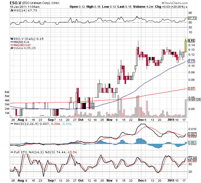 Die Liquiditätskrise versetzte dem Sektor zuletzt noch einen finalen Tiefschlag, doch nun ist die Zeit der Schnäppchenjäger angebrochen. In diesem Zusammenhang nehmen die Experten von Small Cap Trader die kanadische ESO Uranium (WKN: A0HFXF / ISIN: CA2691041057) genauer unter die Lupe, denn der im Juli 2000 gegründete Explorer bringt alle Voraussetzungen für langfristigen Erfolg mit. Zwar besitzt die Gesellschaft in Ontario ein für sich tragfähiges Goldprojekt mit einer historische Ressource von 155.000 Feinunzen Gold (nicht nach 43-101), doch liegt der Schwerpunkt der Arbeiten aktuell auf mehreren Uran-Liegenschaften im bekannten Athabasca-Becken in der kanadischen Provinz Saskatchewan, dem nachweislich uranreichsten Gebiet Kanadas mit einer ganzen Reihe von Uranminen mit teils spektakulären Urangehalten. Etwa ein Drittel des weltweit produzierten Urans stammt von dort! Um so bemerkenswerter ist die Tatsache, dass ESO mit einer Fläche von 985.500 Acres bzw. 3.987 km² zu einem der größten Grundbesitzer in diesem Gebiet aufgestiegen ist und vielfach auf seinen Urangrundstücken auf Erkundungsarbeiten der Vorgängerunternehmen vergangener Jahre zurückgreifen kann. Anteile von ESO Uranium können aktuell auf absolutem Discountniveau eingesammelt werden. Mit entsprechenden Fortschritten im Athabasca-Becken dürfte das Papier mittelfristig die Bodenbildung abschließen und deutlich höhere Kursregionen ansteuern. Unser mittelfristiges Kursziel lautet vor diesem Hintergrund 0,90 Euro. Die Firma ist solide finanziert und mit einem anerkannten Management gesegnet: Ende August fanden sich umgerechnet 4,4 Mio. Euro in der ESO-Kasse. Damit wird bereits gut ein Viertel der aktuellen Marktkapitalisierung von gerade mal 17 Mio. Euro abgedeckt. Aktuell besonders wichtig: ESO Uranium versicherte, dass man keine Asset-backed Commercial Papers (ABCP) besitzt, die derzeit vielfach für negative Schlagzeilen sorgen. ----------- Wen nicht fähig ist, selber eine Meinung zu bilden und eine Entscheidung zu treffen, darf nicht zur Börse.