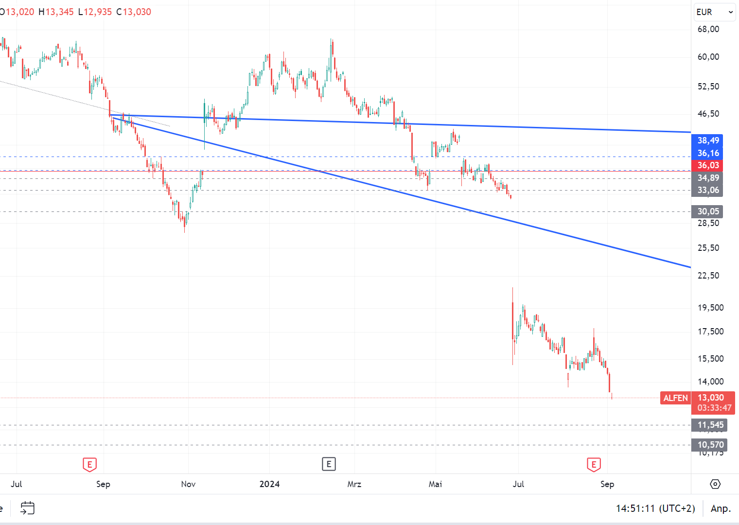 Das Unternehmen hat sich ja selbst auferlegt, in regelmäßigen Zeitabständen berichten zu wollen; und vor diesem Hintergrund war die IR und die Kommunikation grottig. Sowohl was die Schwere, die Weitsicht und die Art und Weise der Kommunikation anbelangt, nicht vertrauenserweckend. Die konjunkturellen Zwänge sind klar und dass sie auch Alfen betreffen – keine Frage. Nur der Umfang und die Tragweite sind das, was die Anleger nun zum Neubewertung drängt, und erschüttert, wenn es so schlecht kommuniziert wird.