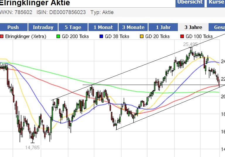 Solange aber muss mit weiteren Kursverlusten in der Aktie gerechnet werden. Ein Bruch der 21,24iger Unterstützung könnte dabei zu Abgaben bis auf 20,00 Euro führen, wo mit einer Retracementmarke und der mittelfristigen Aufwärtstrendlinie jedoch eine neue Unterstützung auf die Bären wartet.