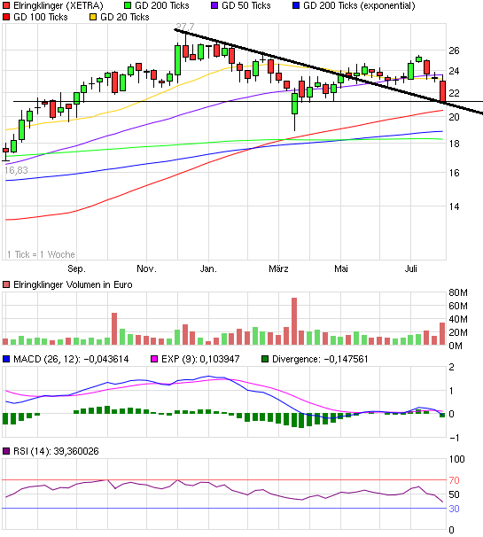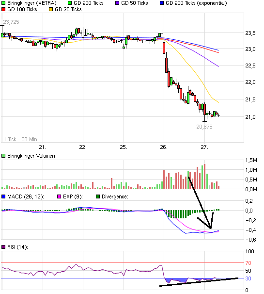 Meiner Meinung nach wird der kurs nicht unter 22.80 Fallen. Hier hat sich meines erachtens ein kleiner Wiederstandspunkt gebildet. Ich steige bei 23 Euro ein. Schliesslich kommen bald die Zahlen von Elringer raus, die USA muss bald eine Richtlinie ansagen wenn sie nicht pleite gehen wollen was wohl kaum passieren wird und von Griechenland haben wir erstmal unsere Ruhe. |