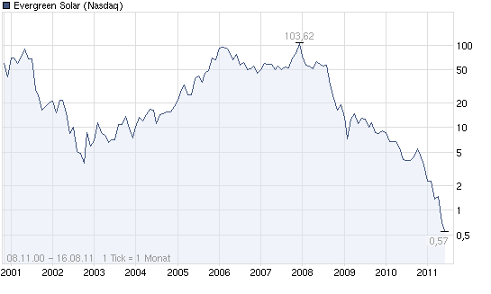 Aktien von Evergreen Solar brachen gestern um 57,1 Prozent auf 0,18 USD ein.