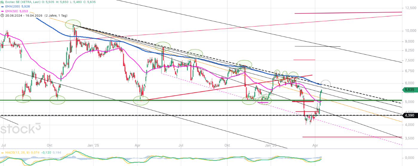Wenn man dem Kern der Berenberg News glauben schenken darf, wonach Evo mit deutlich steigenden Auftragsvolumina seitens KI-gestützter Medikamenten- und Wirkstoffforschung rechnen darf, dann sollte der heutige Kursanstieg nicht der letzte in 2026 sein.