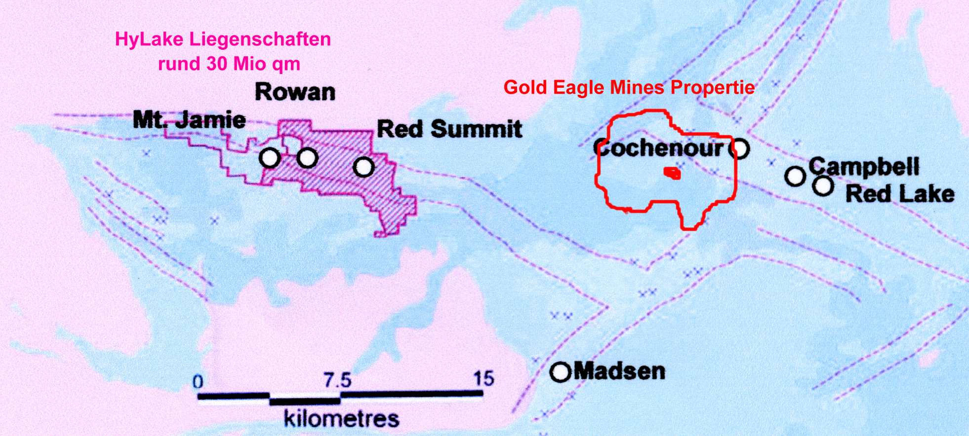 als Realisierung seiner ergeizigen Ausdehnungspläne im Red Lake Trend, die im Umfang von mehreren Millarden Dollar angekündigt worden sind! Und es wird nicht die letzte Übernahme sein, laut CEO Goldcorp! Und wer sich mal genau anschaut, wo GoldEagle seine Claims hat und die dann mit HyLake vergleicht (JA, genau hinsehen! HyLake ist linker Nachbar!!!!) der kann sich eigentlich nur eine Frage stellen: "Nicht ob, sondern wann!"