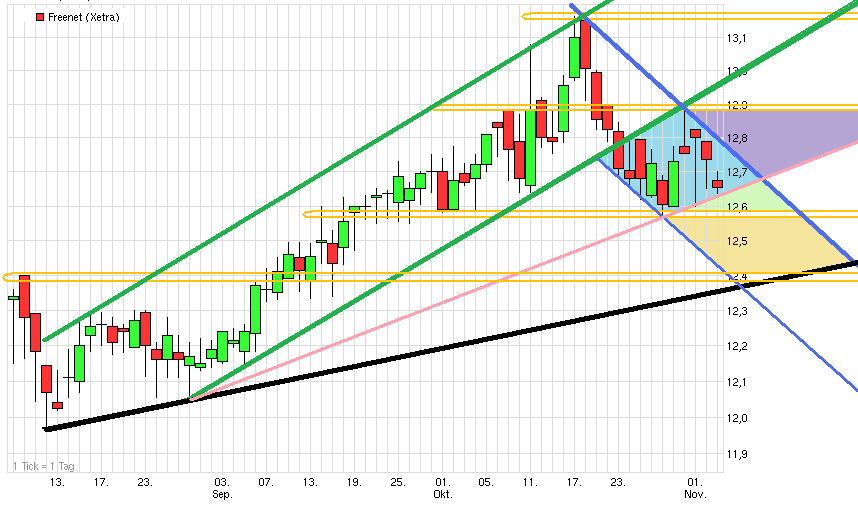 Man muss nun bei den Q3-Zahlen mal genauer auf die Wettbewerbssituation und den Ausblick beim cashflow hören. Wenns da keine größeren Probleme gibt, sollte der Bereich 12,55 spätestens 12,30 eine gute Unterstützung sein. Und wenns auf 11,4 abwärts geht, geht die Welt auch nicht unter. Hat man dann halt 10,5% Div-Rendite.