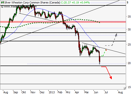 (shareribs.com) London 24.06.13 - Der Goldpreis ist in den vergangenen Wochen massiv abgesackt, der Preis für Silber folgte dieser Entwicklung, welche sich aus der Aussicht auf ein Ende der extrem lockeren Geldpolitik und die verbesserten Konjunkturprognosen ergeben.