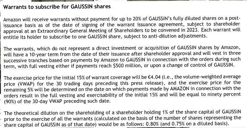 an Amazon Lieferung werden sie keinen Cent verdienen oder verdient haben. Ich rechne mit grausamen Zahlen, aber wie immer bei Gaussin mit traumhaften Aussichten die nicht eintreten. Wo soll denn die Kohle herkommen? Wenn sie alle Paar Monate zig-Mio frisches Geld brauchen um sich über Wasser zu halten. Ich glaube endgültig nicht mehr an die Story...