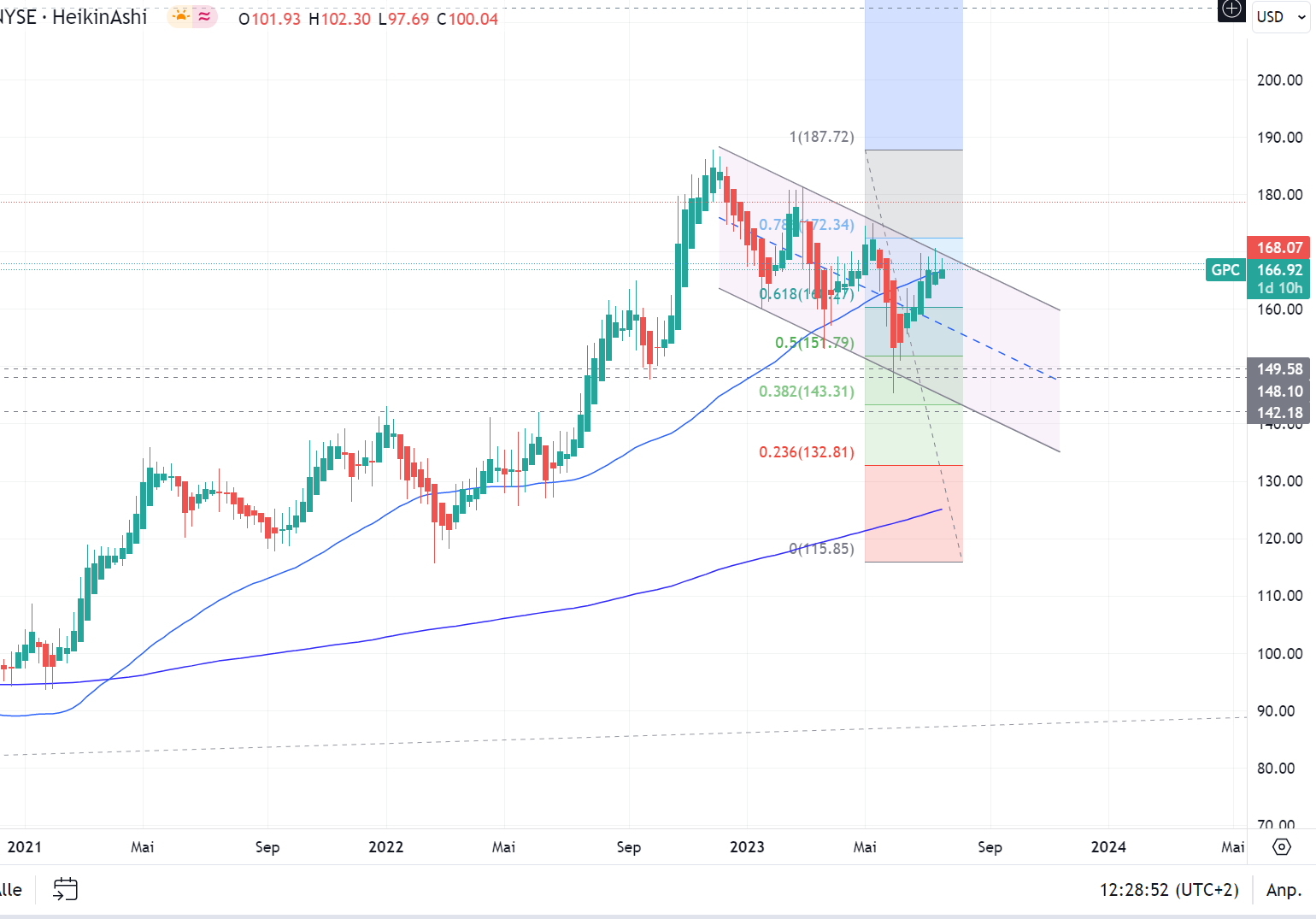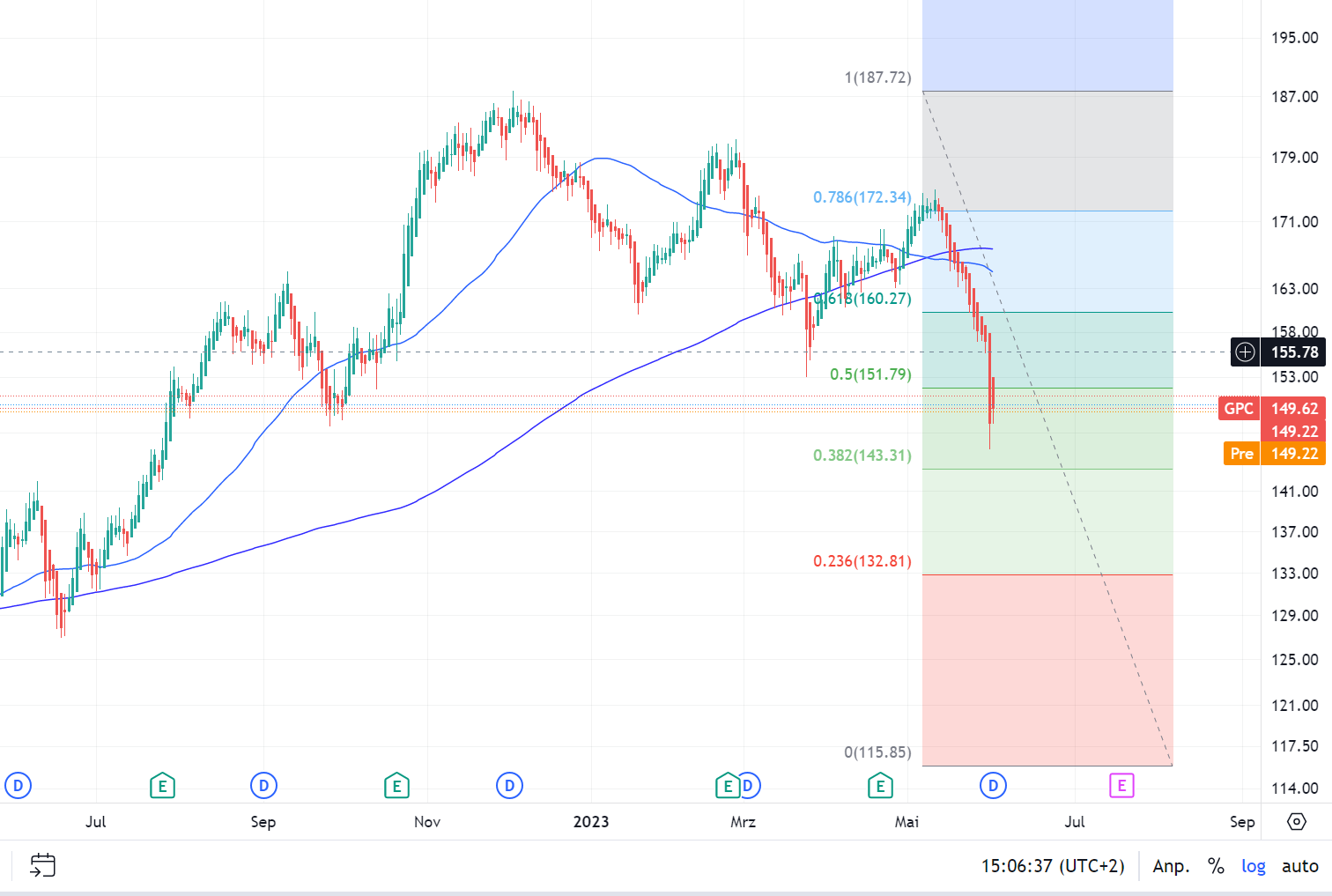 Bewertung: Auf den ersten Blick wirkt GPC teuer, weil das ausgewiesene KGV bei rund 23,8 liegt. Das ist aber wegen der massiven Sondereffekte 2025 kaum sinnvoll. Auf Basis des bereinigten 2025er Gewinns liegt das Kurs-Gewinn-Verhältnis eher bei rund 14,6, und auf Basis der 2026er Zielspanne bei etwa 13,4 bis 14,3. Für ein Unternehmen mit dieser Marktstellung, dieser Historie und einer knapp 4-prozentigen Dividendenrendite ist das nicht billig, aber klar näher an „vernünftig bewertet“ als an „überteuert“. Meine Einschätzung ist deshalb: Die Aktie ist eher moderat unterbewertet bis fair bewertet, vorausgesetzt die operative Stabilisierung gelingt und die Abspaltung läuft sauber. Mein vorsichtiges 12-Monats-Kursziel liegt bei 95 US-Dollar, mein Basisszenario bei 120 US-Dollar und mein bullishes Szenario bei 140 US-Dollar. Der Abschlag im bear case würde durch weitere Tarif- und Margenprobleme, europäische Schwäche und Separationsrisiken ausgelöst. Das Basisszenario setzt voraus, dass der Markt die bereinigte Ertragskraft wieder stärker gewichtet. Das bullishe Szenario braucht zusätzlich eine glaubwürdige Sum-of-the-Parts-Neubewertung vor dem Spin-off. (Genpt)