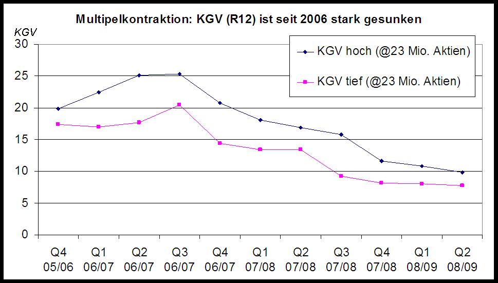 Noch optimistischer ist man beim Bankhaus Lampe, was das Kursziel angeht. Dort hat man das erwartete Aufwärtspotenzial vergrößert, sieht die Zielmarke nun bei 32,00 Euro statt wie zuvor bei 27,50 Euro. Auch hier gibt es die Bestätigung der Kaufempfehlung. Für das laufende Geschäftsjahr erwarten die Experten einen Überschuss von 2,24 Euro je Aktie, der 2010/2011 auf 2,40 Euro steigen soll. Die vorläufigen Zahlen des vergangenen Geschäftsjahres 2008/2009 hätten die Experten positiv überrascht und begründen nach ihren Angaben die Anhebung der Zielmarke.