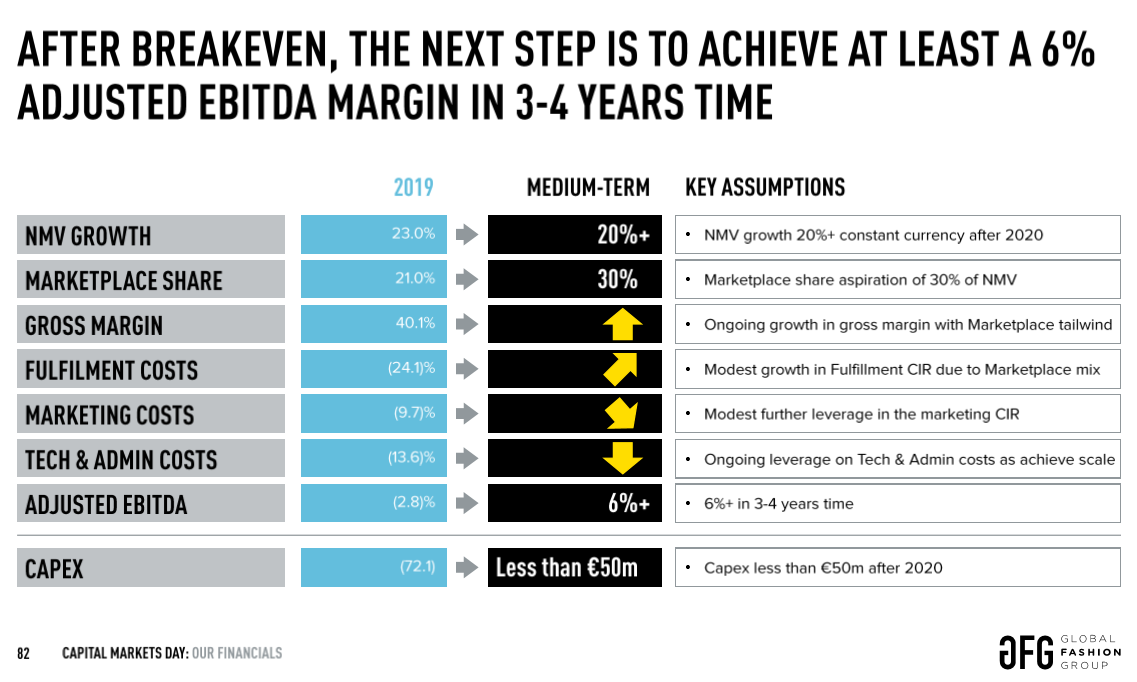 In der Folie die du eingestellt hast steht, wenn der Marktplatzanteil auf 30% wächst, wächst die Bruttomarge um 3%. Da wir jetzt schon über 30% Marktplatzanteil sind, könnte es in den folgenden Quartalen also schon über 45% Bruttomarge geben. Sollte sich der Marktplatzanteil weiter richtung 40% erhöhen kann die Marge auch in Richtung 48-50% gehen.