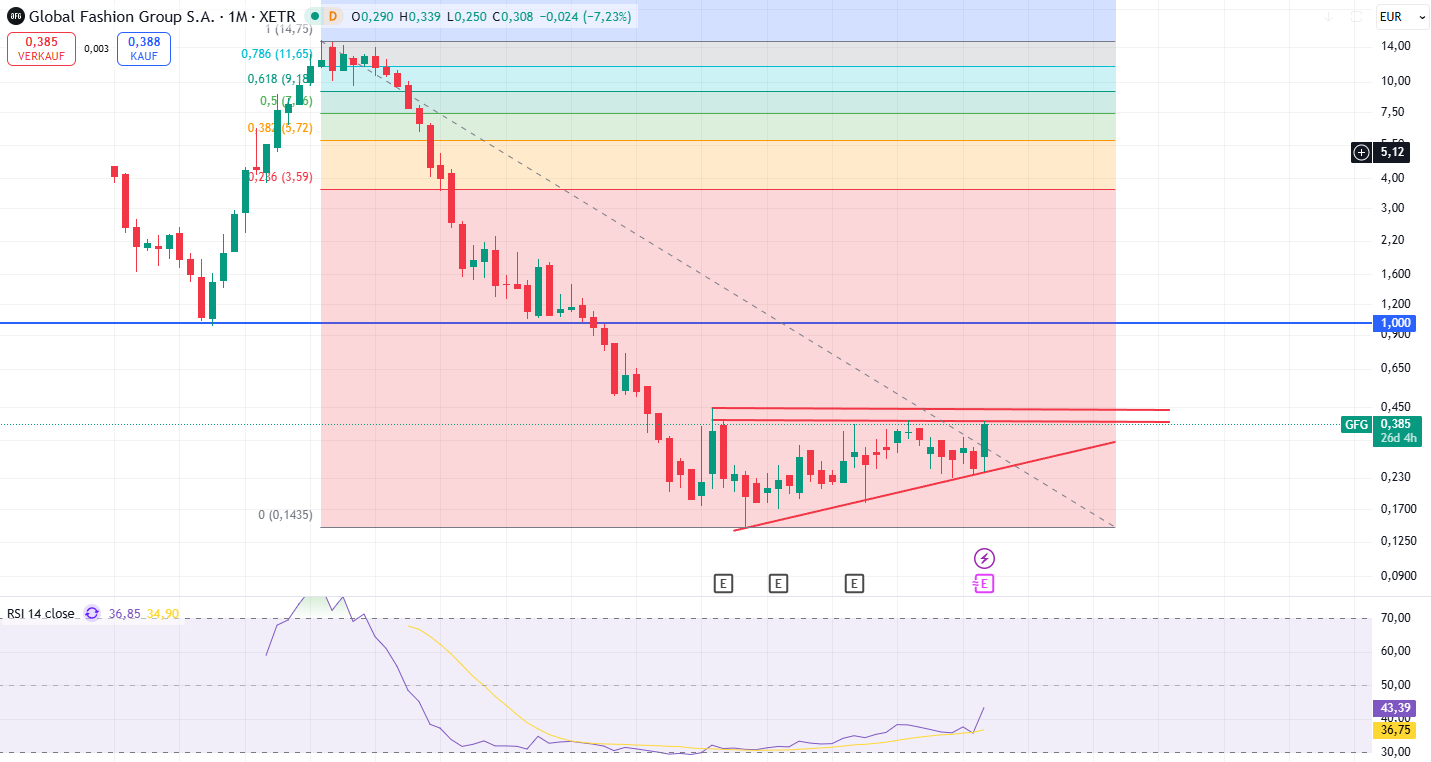 Nur mal als BEISPIEL zur Bewertung: Als Zalando About You geschluckt hat, zahlten sie grob das 0,55-fache des Umsatzes. Wendet man dieses Multiple auf die gut 1 Milliarde Umsatz von GFG an und rechnet die 140 Mio. € Cash noch obendrauf, landen wir bei einem Übernahmepreis von über 3,00 € pro Aktie.