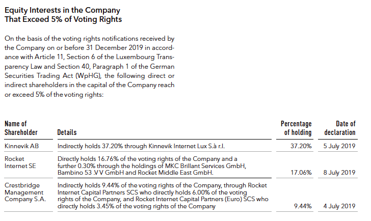 Man sollte auch nicht vergessen, dass auch ein Teil der Rocket-Aktien im eigenen Fonds "Rocket Internet Capital Partners" befinden. Ich weiß nicht, bei welcher Angabe diese Stücke enthalten sind. Das könnte aber theoretisch den Unterschied im Juli 2019 erklären.