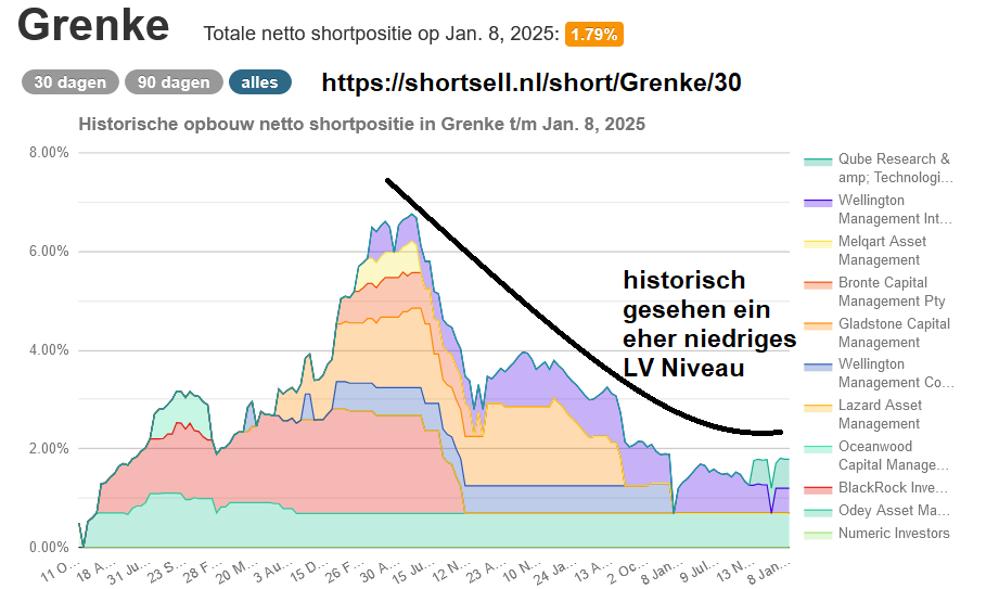 Viele Werte die in 2024 Probleme hatten und schwach performt haben, wurden gerade in den letzten Wochen des Jahres eher weiter abgebaut oder blieben tief im Keller während der Gesamtmarkt hysterisch von einem Allzeithoch zum nächsten weiterrannte. Da war natürlich auch der Faktor Window Dressing der Vermögensverwalter und steuerliche Verlustrealisierung zum Jahresende mit ein Faktor gewesen der gerade solche Werte zusätzlich belastet hat. Das ist jetzt mit dem 1.1. des neuen Jahres vorbei. Entsprechend haben viele dieser Werte auch in den letzten Tagen wieder etwas stärker aufgeholt gegenüber dem Markt. Wie weit diese technische Erholung jetzt Grenke tragen wird bleibt abzuwarten.