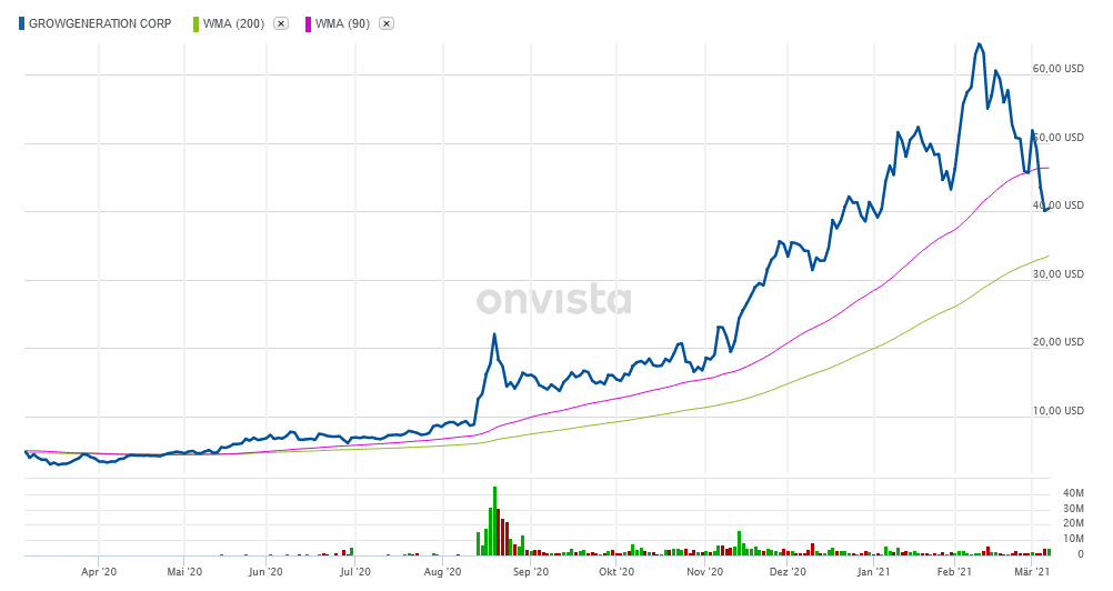 Ein weiterer Katalysator für GrowGeneration könnte der momentan leicht aufflammende Cannabis-Boom sein. Unter Joe Biden dürfte die Legalisierung weitergehen, was manche Cannabis-Unternehmen dazu anregen könnte, weitere Kapazitäten auszubauen. GrowGeneration ist nicht abhängig von diesem Geschäftszweig, hat allerdings Produkte im Sortiment, die von Cannabis-Unternehmen benötigt werden. Dies könnte sich m.E. günstig auf GrowGeneration auswirken.