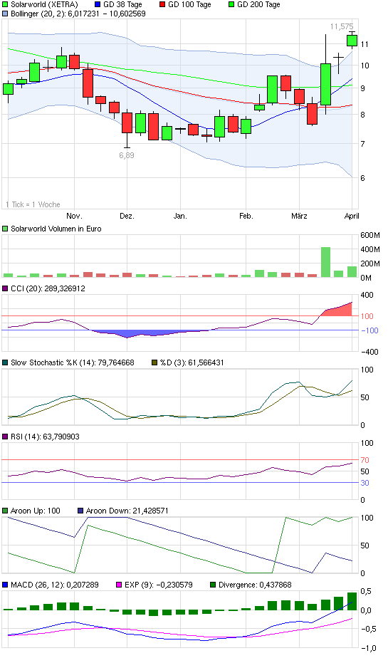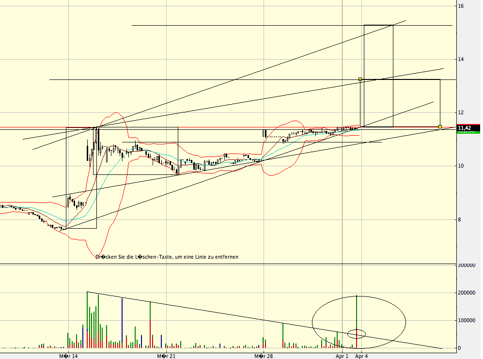 über der dem 11,38er Sub, über dem mittleren Bollinger, über dem 10er SMA, dem kurzfristigen Aufwärtstrendindikator...