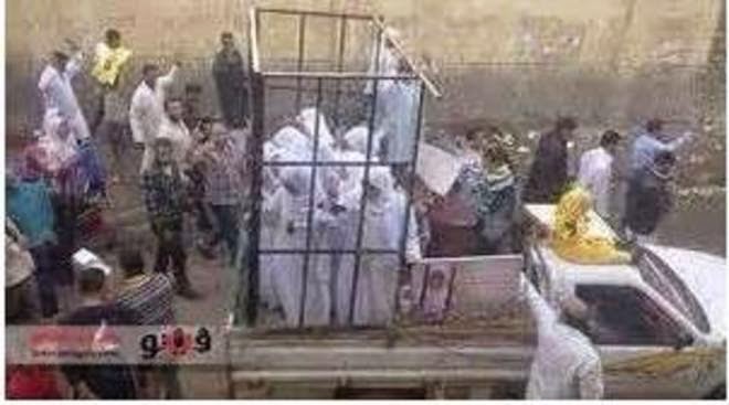 Christinnen im Pick-Up mit Transport-Käfig auf´m Markt.
