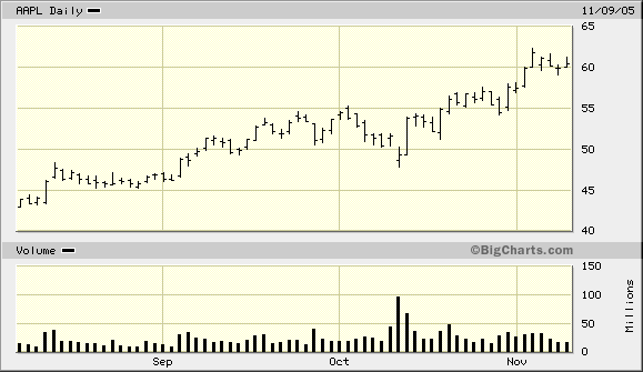 Ich schätze, es wird genauso weitergehen wie bei Apple nach den Oktober-Zahlen: Apple fiel zunächst ca. 10 % auf 47 USD, um dann von dort 30 % auf 61 USD zu steigen. Den 3-Monats-Chart von Apple hänge ich mal unten ran. Der (Panik-)Abverkauf nach den Zahlen ist am Volumen erkennbar.