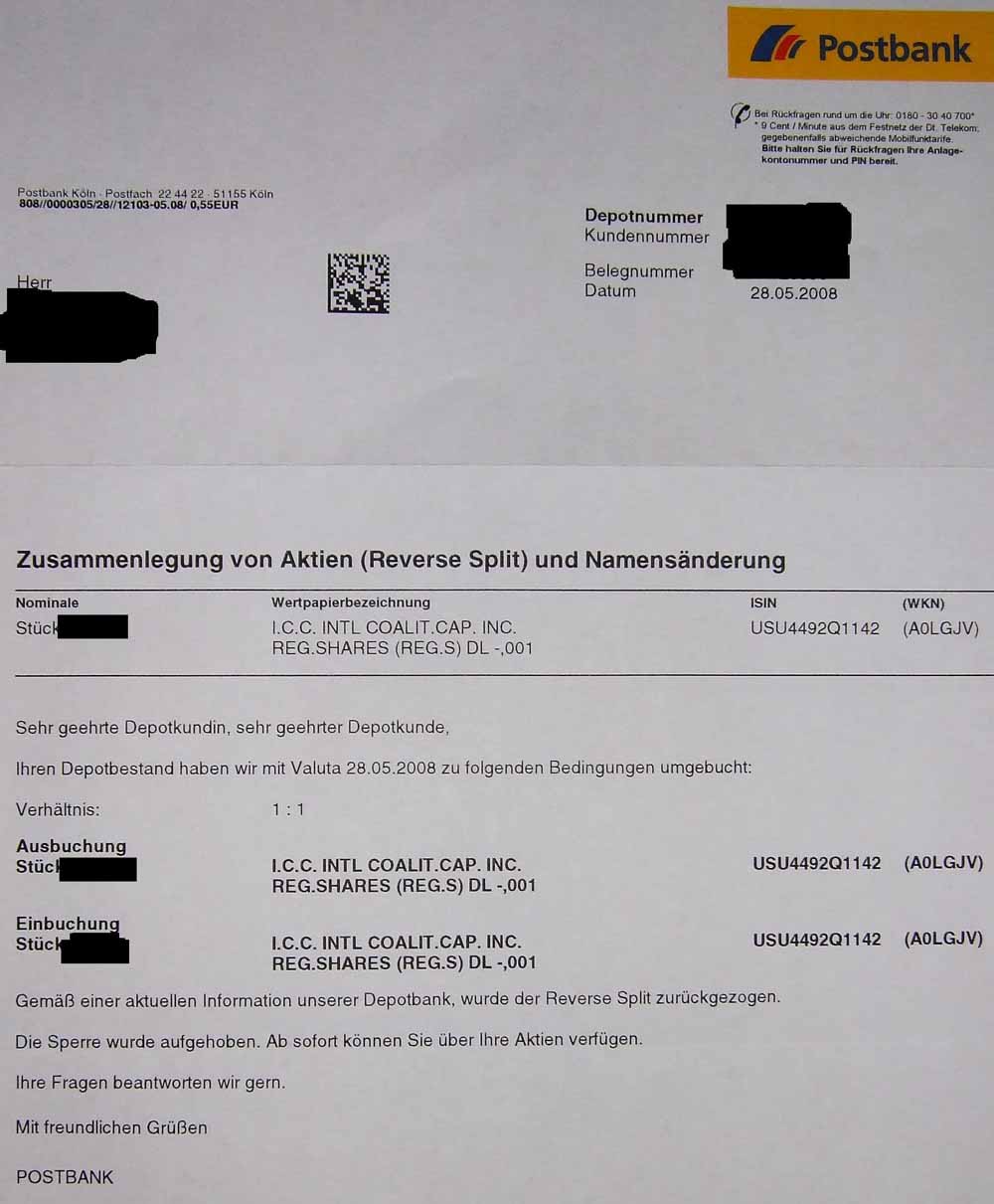 Zuerst moechte ich mal sagen das ich keinerlei Grund habe jemanden die Aktien schoen zu reden oder aufzureden. Man kann ja mal anfangen Fakte zu schaffen fuer die welche es wissen wollen und die welche dann alles negativ schreiben habe dann neuen Stoff zum negativ reden. Man sollte einmal davon ausgehen, dass die ICC 49% einer Pharmafirma erworben hat, welche ein neuartiges Krebsmittel mit positiven Forschungsergenissen in der Zulassungsphase (BRD) hat (Stufe 2). Vor einigen Tagen wurde ein solche Firma allerdings mit Phase 1 zu 190 Millionen verkauft dies mal nur als Info. Nun fragt man sich wie das finanziert wurde. Mit sicherheit nicht durch das Geld der Kleinanleger die sich hier ueber das Ein oder Andere auslassen. Hier haben sich man staune und hoehre schon Investoren von anderer Sorte zusammen getan und die ICC mit neuem Leben gefuellt. Man sollte mal weiter davon ausgehen, dass nach Wiederaufnahme des Handels, maximal 5% des dann neuen vorhandenen Aktienvolumens am Markt platziert werden. Mehr nicht. Ich wuerde ernstahft empfehlen beim negativ schreiben vorher nachzudenken denn es koennte einem auf die Fuesse fallen. Sicher scheint dass alles nun unmoeglich aber ist es leider nicht. Die Vertraeg sind unterschrieben und der Rest laeuft nun an. Dazu wird es dann auch die dementsprechenden Meldungen geben. Sollte dann einer Aktien kaufen wollen um dabei zu sein kann es allerdings schon zu spaet sein denn maximal 5 % werden am Markt platziert. |